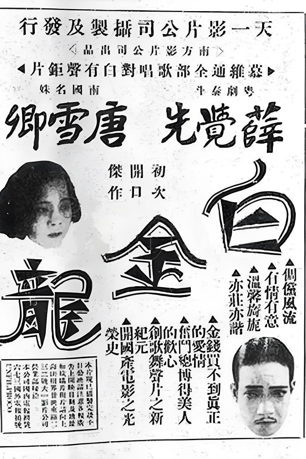 1933年,天一电影公司出品粤剧时装电影《白金龙》。哪知开拍时,导演邵醉翁陡然病倒了,汤晓丹担任配景联想兼导演。电影拍完后,后期制作也由汤晓丹完成。