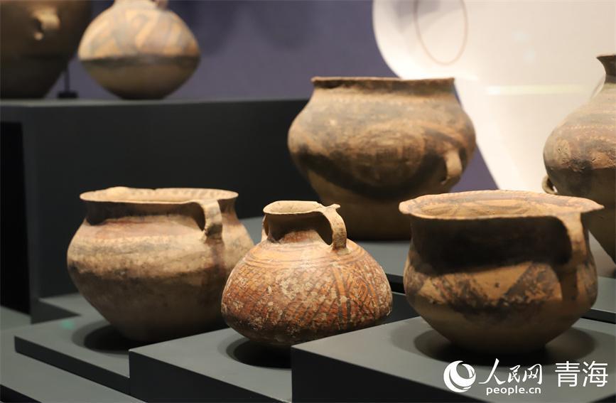 博物馆内展出的彩陶。东谈主民网 马可欣摄