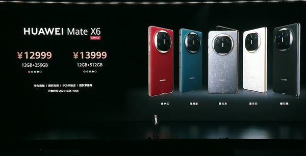 华为Mate X6:12GB+256GB售价为12999元、12GB+512GB售价为13999元。