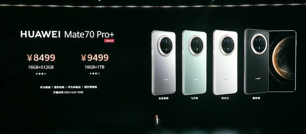华为Mate70 Pro+:16+512GB售价为8499元、16+1TB售价为9499元。