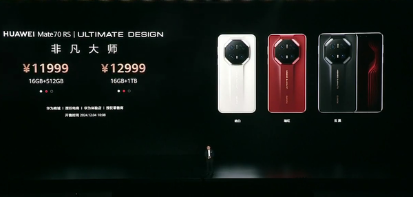 华为Mate70 RS 不凡巨匠:16+512GB售价为11999元、16+1TB售价为12999元。