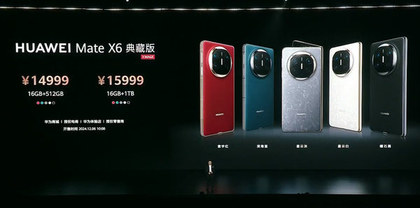 华为Mate X6典藏版:16GB+512GB售价为14999元、16GB+1TB售价为15999元。
