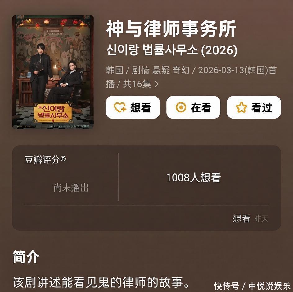 《神与讼师事务所》更是脑洞灵通,惊骇讼师天生能见鬼,与冷血精英组了个相配CP,还被鬼附死后绝对放飞自我。预报里笑剧节律持得刚刚好,那种鬼魅低语和突兀的笑声让东说念主既发怵又乐得停不下来,魔幻与搞笑的混搭,几乎是追剧东说念主的下饭神器。