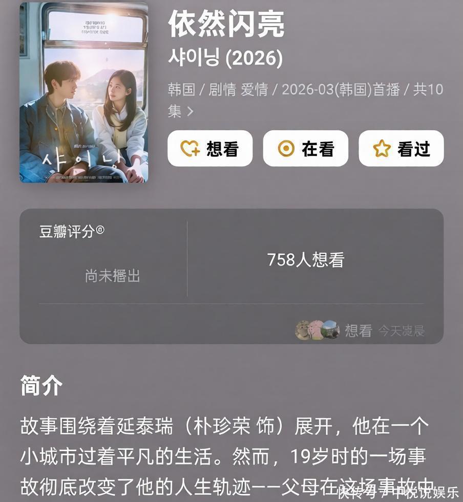 《依然闪亮》里地铁司机朴珍荣重遇初恋民宿雇主金文周,看着像重温旧梦的陈腐路,但导演是《那年咱们》的,编剧是《一半的一半》的,这个扶助系画风,可能会反套路打脸,关切里带少许不测。那种地铁进站的声息配着老友的笑,能让东说念主须臾回到芳华的某一刻。