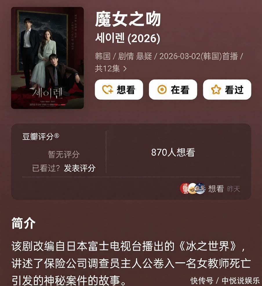 3月韩剧真实有点疯,题材一个比一个刺激。先说《魔女之吻》,保障公司访谒员访谒连环命案,效果朴敏英的三个只身夫十足离奇死了,保障受益东说念主清一色写她名字。流言、归天、救赎交汇得让东说念主直冒盗汗,更狠的是男二金正贤和主角团之间那段危急三角恋,剧情张力爆到屏幕皆绷不住。