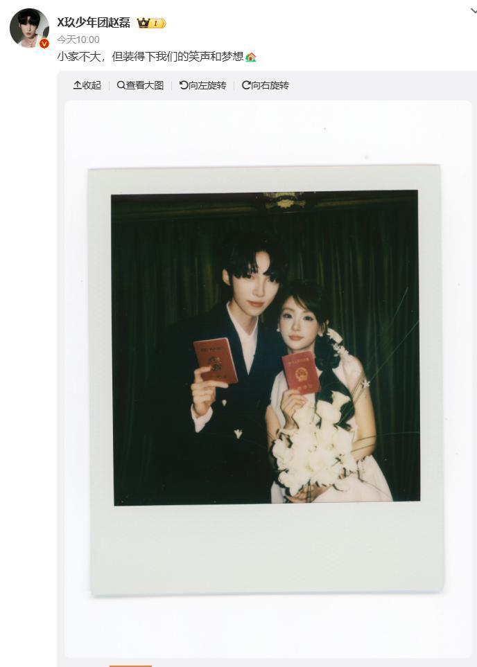 2月14日情东说念主节,赵磊晒出和女友手拿成亲证的合照,官宣成亲捷报,并配文“小家不大,但装得下咱们的笑声和梦念念?。”