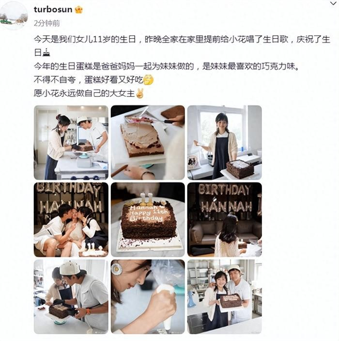 除了温馨有爱的亲吻照,亲手制作诞辰蛋糕也成了此次诞辰会的一大亮点。