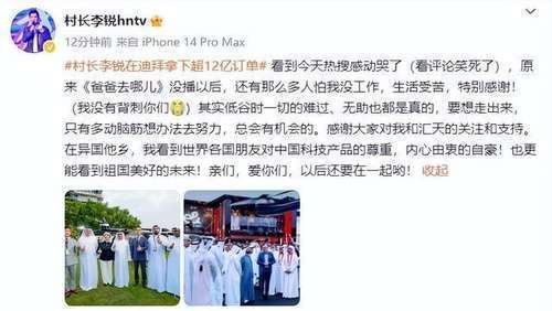 10月12日,迪拜的天外很吵杂,小鹏汇天的“陆地航母”一飞冲天,完成了国际首秀。这玩意儿,听着就科幻,像极了小时分看的动画片,没猜度真能成真。与此村长李锐在迪拜拿下超12亿订单的话题也随着火了。这音书一出,网上短暂炸开了锅,要知说念,李锐当年然而《爸爸去哪儿》里拿着大喇叭喊“勾通啦”的村长,如今摇身一形成了科技大佬,还跟迪拜王室谈古说今,这反差,险些比演义还精彩。