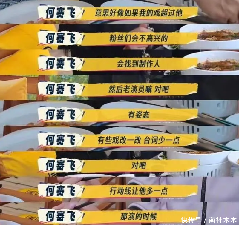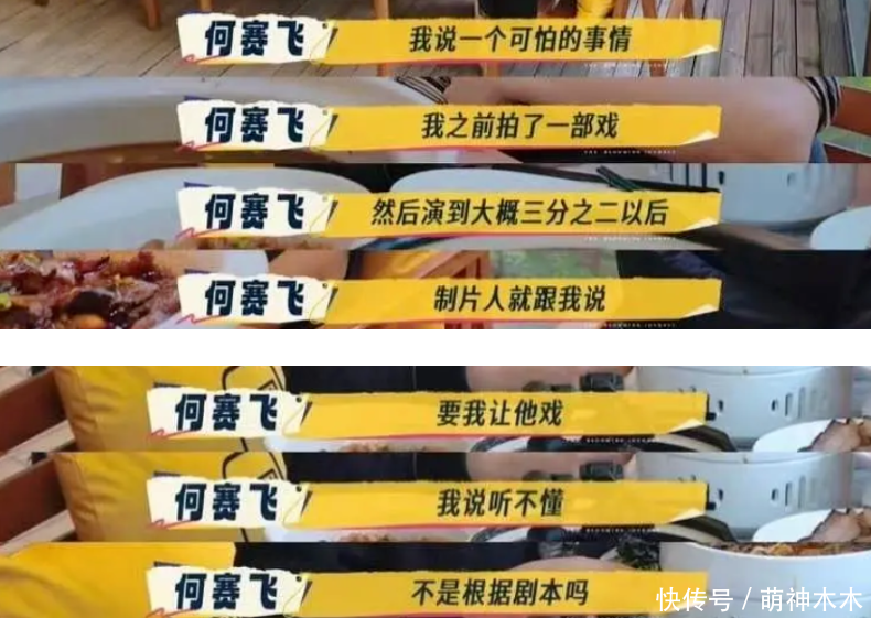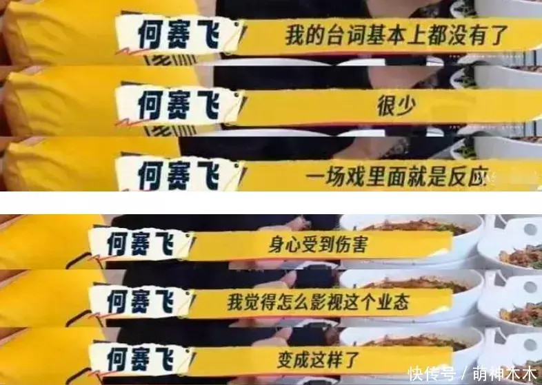 为了幸免粉丝悲凉,何赛飞无奈让了戏,明明脚本都写好了,但她依然要减少台词,给流量演员更多镜头,以至偶然候一场戏险些没台词,只剩下反映,还不一定有镜头,一部戏拍完,何赛飞嗅觉身心都受到伤害。
