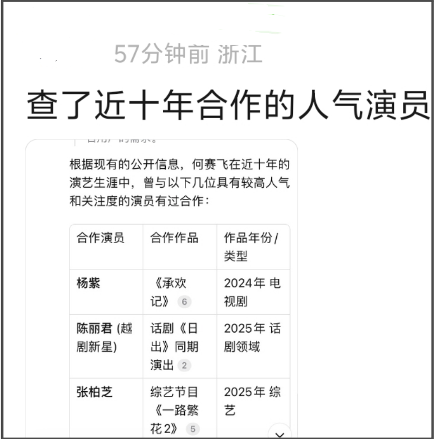 何赛飞莫得点名说念姓,有网友顺着她的作品开扒,发现何赛飞连年合营过的演员,称得心事量的并未几,最为著明的居然是90花杨紫。
