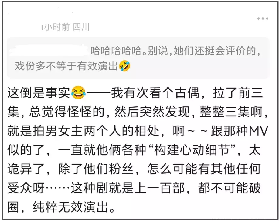 围不雅了何赛飞吐槽,网友一忽儿思到了市面上愈发失去眩惑力的长剧,所谓大男主、大女主剧便是主角独角戏,要未便是男女主二东说念主转,统统扮装都为主角作事,剧情没逻辑、东说念主物没塑造,拍出来郑重粉丝特供,敢情根源都在让戏啊!