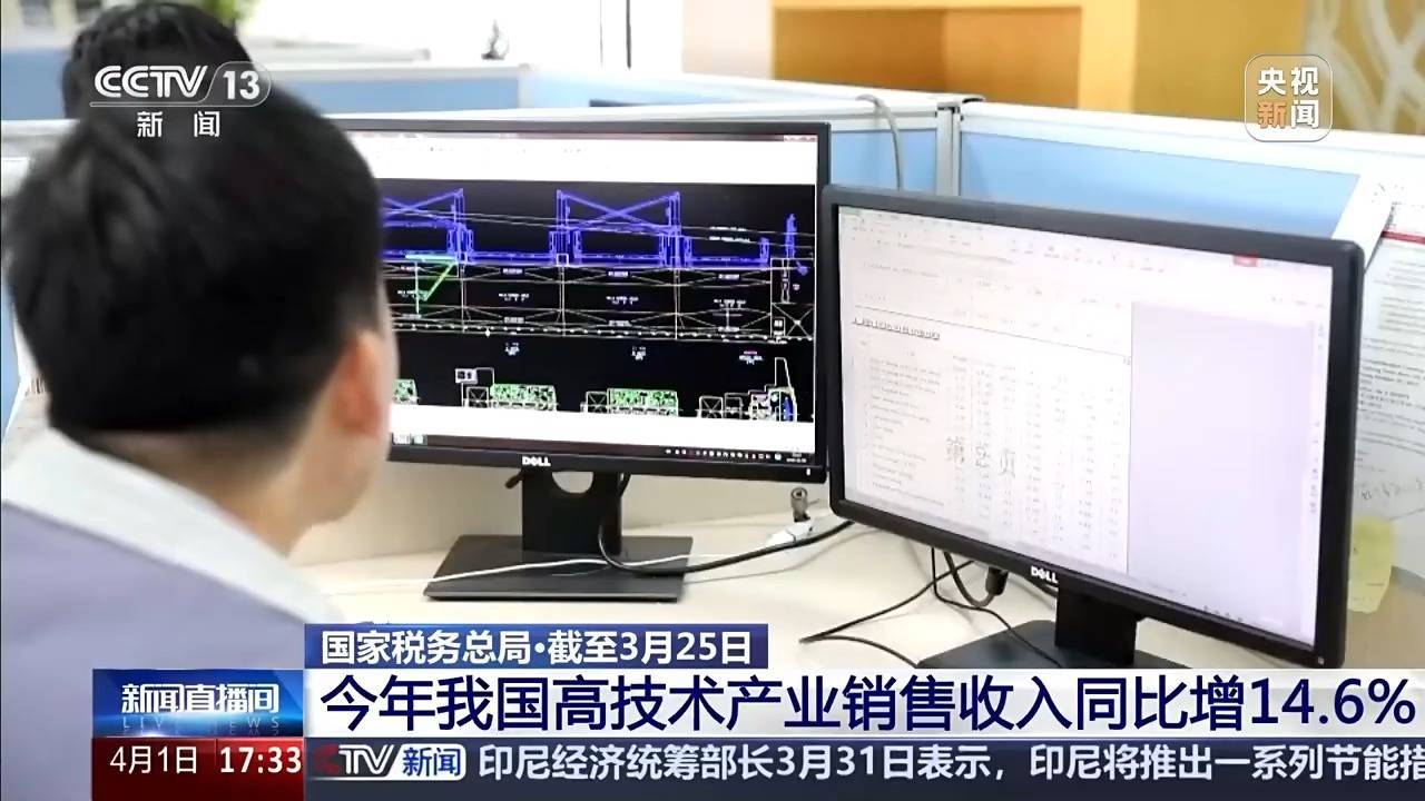 国度税务总局今天发布的发票数据败露,本年以来,收尾3月25日体育游戏app平台,高本领产业销售收入同比增长14.6%。