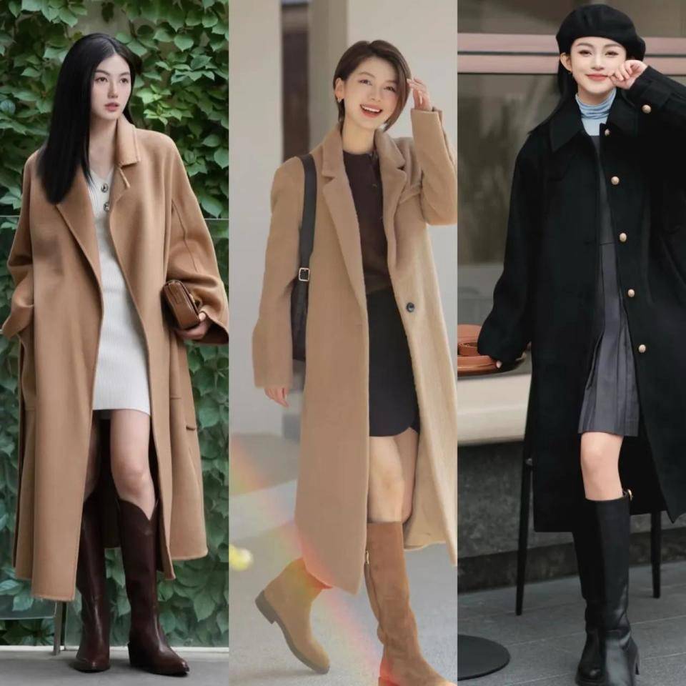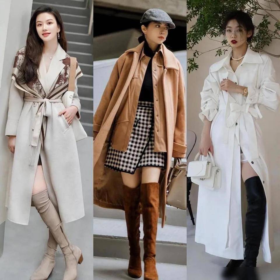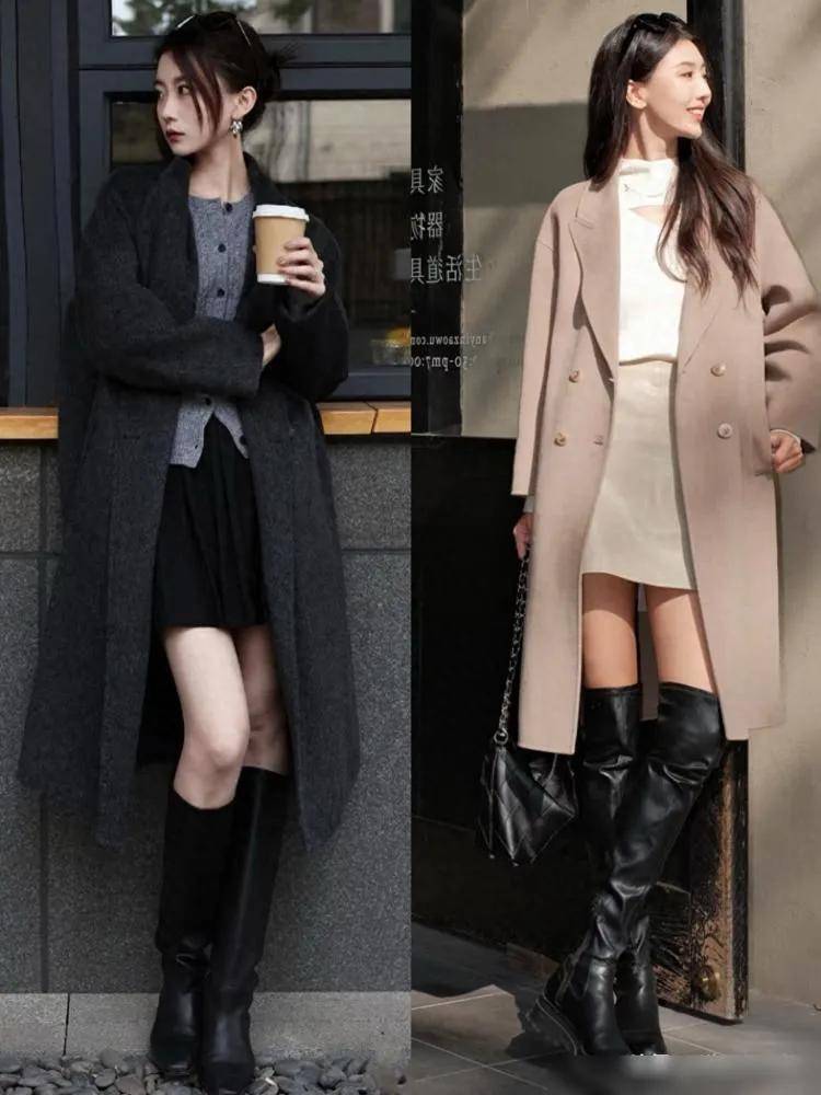 举例,底下右边的浅驼色大衣外衣内搭白色毛衣,加上驼色的短裤,脚上穿了一对米白色的皮子中筒靴,齐是低迷漫度的一稔色调,但色差比拟大,是以组合在一谈酿成一个撞色的效劳,穿的期间还要把内搭的毛衣衣角塞进裤子内部,更能普及腰线。
