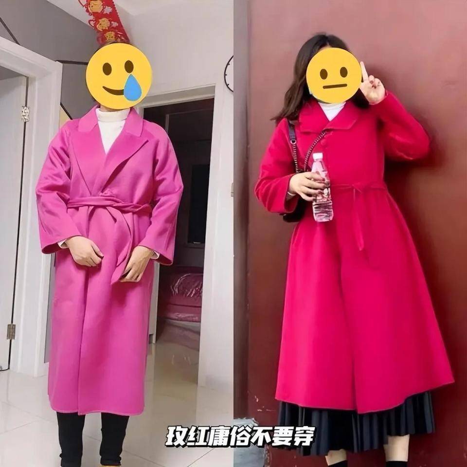 举例底下这种玫瑰红的大衣外衣,这么的一稔色调天然是纯色系,然则也很难穿出高等感,穿在身上之后就显得平庸。