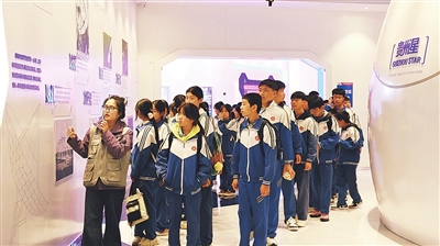 在南仁东缅念念馆,研学学生凝听栽培员的先容后,被南仁东先生爱岗敬业、敢为东谈主先、天长地久、忘我奉献的科学精神和爱国情愫所感动。